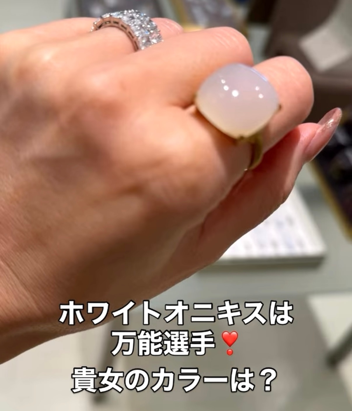 ホワイトオニキスは、どんなお洋服にもマッチしてくれるので万能選手。