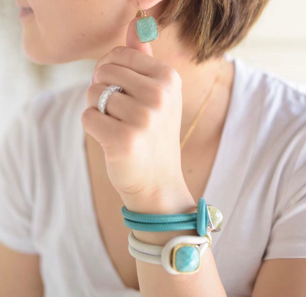高級感のあるラムソフトレザーが素敵なブレスレット。 カジュアルにもエレガントスタイルにもマッチする大人のレザーアイテムです。 silver 925/K18WGコーティング stone:アマゾナイト leather:ラムソフトレザー color:ホワイト.ブルー ※レザーの長さはお腕周りの実寸をお測りいただき、ご注文ください。 お腕周り:商品サイズにも目安 実寸14cm → 商品18cm 実寸15cm → 商品19cm 実寸16cm → 商品20cm 実寸17cm → 商品21cm