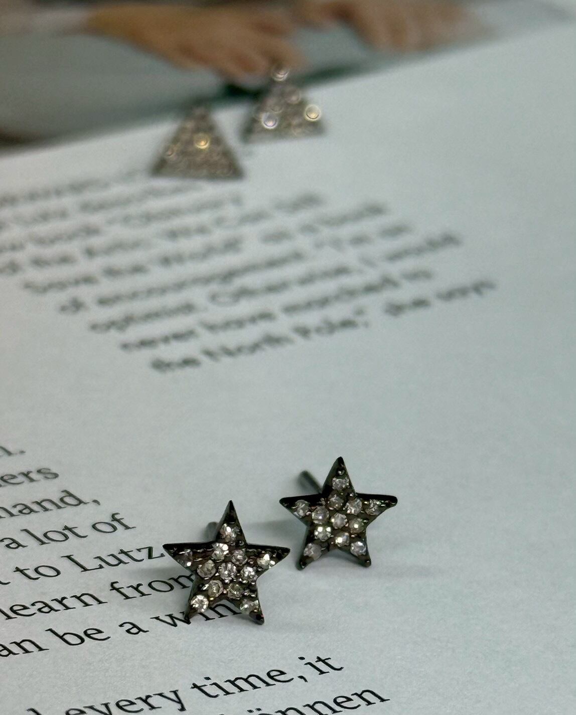 「スター」 人と違うものをセレクトしたい...だからこそのモチーフです。 chicのダイヤモンドは「ナチュラルダイヤ」 今回のコレクションはブラウンダイヤモンドです♪ ブラウンの輝きはどこか上品であり、 ブラックコーティングで個性をだすコレクション。 「スター」は大人の遊び心。 素材:sirver925/K18BGコーティング Stone: ブラウンダイヤ 全体 縦×横:約0.8cm