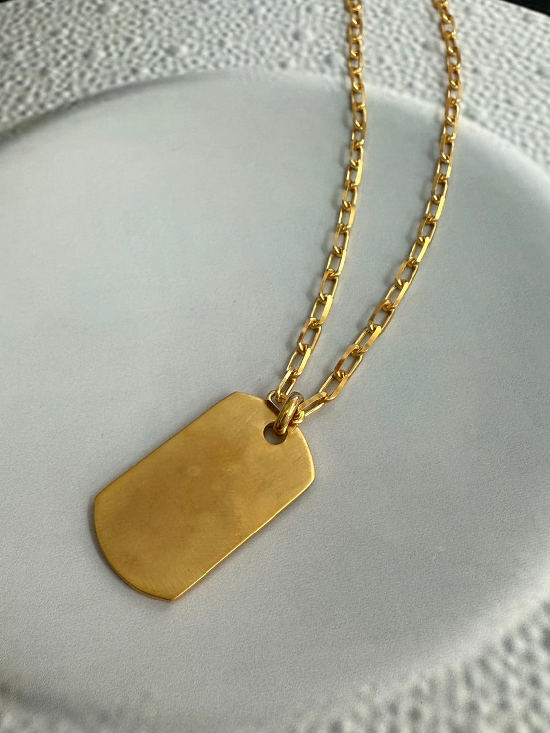チェーンとプレートの組み合わせで、 ニットに合うネックレスを作ってみました。 チェーンも存在感のあるクリップチェーン。 プレートは表がマットに。裏はポリッシュでリバーシブル。 シンプルだけど存在感抜群のプレートネックレス。 素材:sirver925 /K18YGコーティング 全長:約45cm