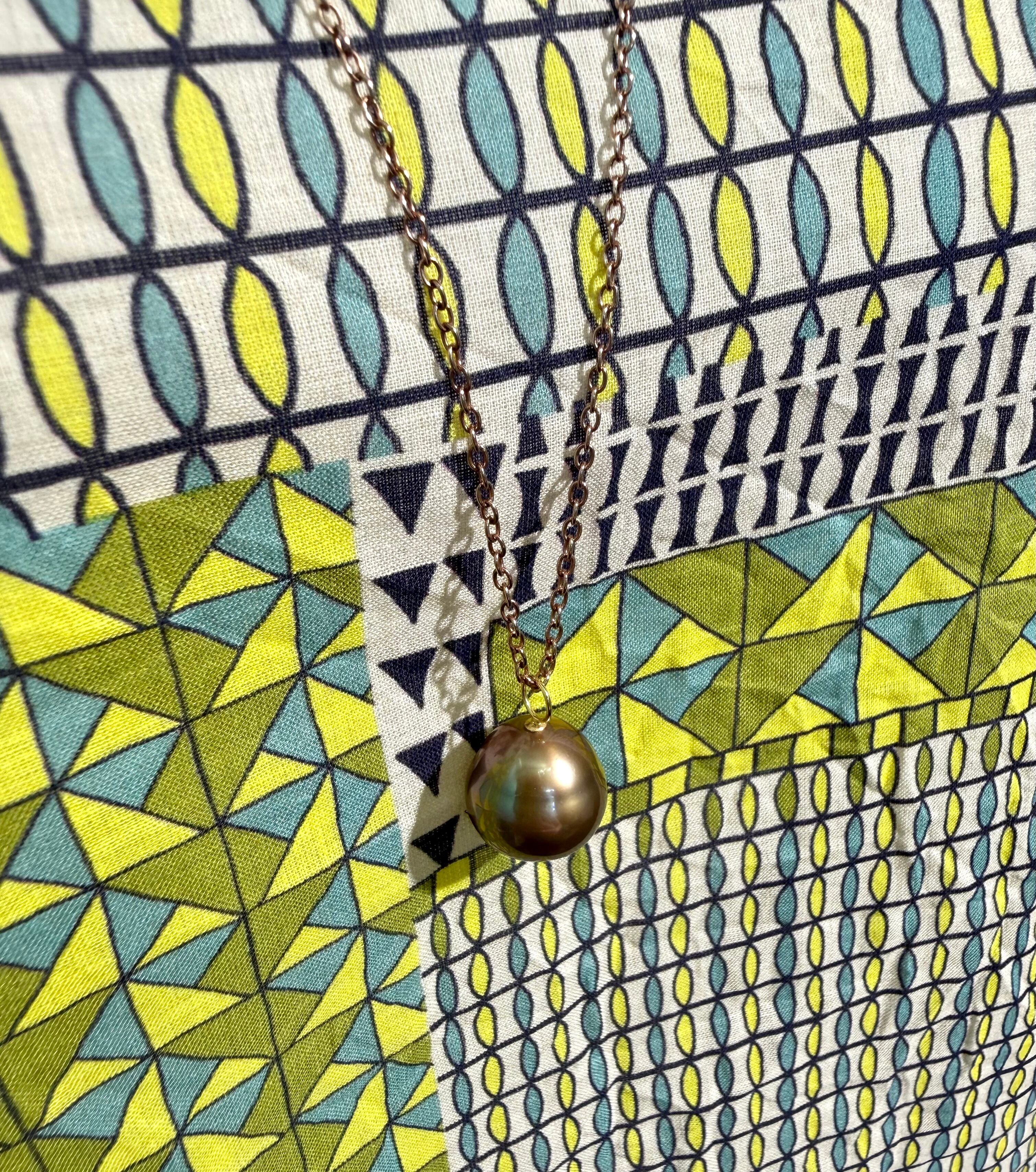 ゴールドブラウン色に輝く、ショコラパールのロングネックレス。 落ち着いた色合いのオシャレなショコラパールは、シンプルな装いにはもちろん、柄物の装いにもマッチしてオススメです。 素材:sirver925 /K18PGコーティング ショコラパール 全長:約72cm