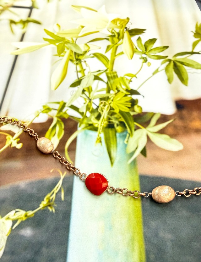 レッドストーン×ゴールドブレスレット/K18PGコーティング