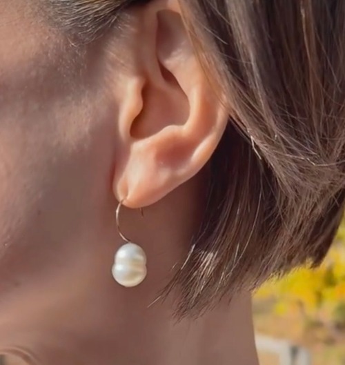 愛らしいかたちの大ぶりパールピアス。 コロンと耳元で揺れる姿が、とっても可愛いです♡ 素材:silver925/K10YGコーティング ナンヨウパール 11mm