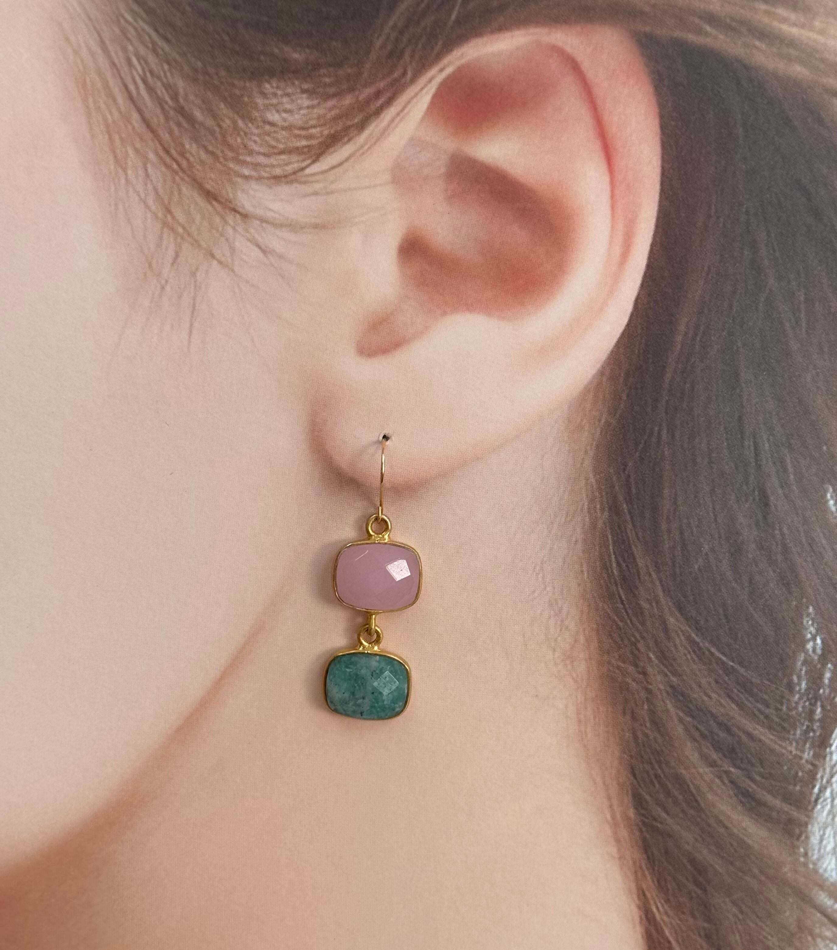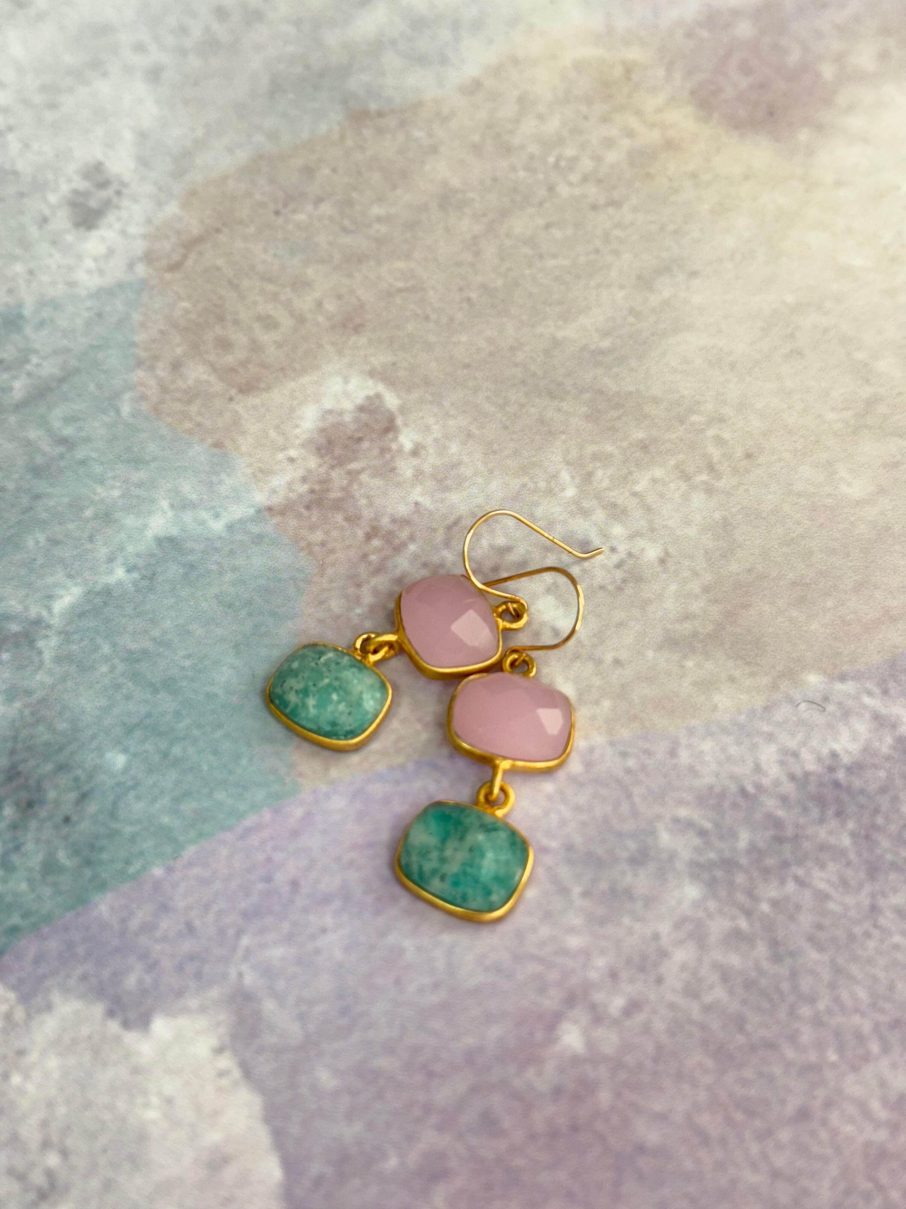 ミルキーカルセドニー×アマゾナイトピアス/K18WGコーティング